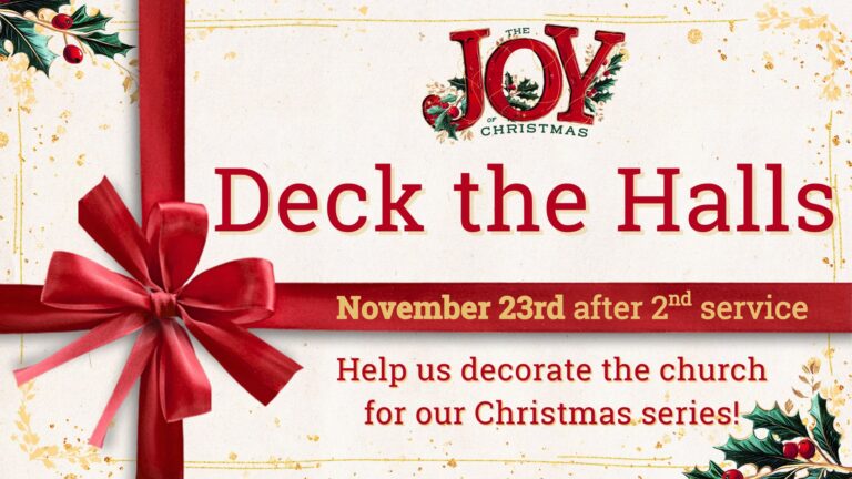 Haul out the holly – it’s time to deck the halls! Join us after the second service on Sunday, November 23, to make our church festive for Christmas. Lunch will be provided, and families are welcome! Let us know if you’re coming so we’re sure to have enough food.